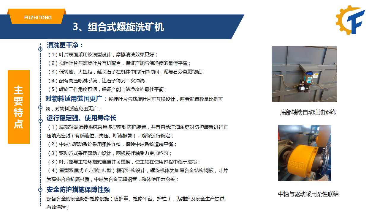 組合式螺旋洗礦洗石機葉片螺旋葉片與攪拌葉片組成,對物料適應(yīng)范圍更廣;性能優(yōu)勢清洗更干凈:(1)葉片表面采用波浪型設(shè)計,摩擦清洗效果更好;